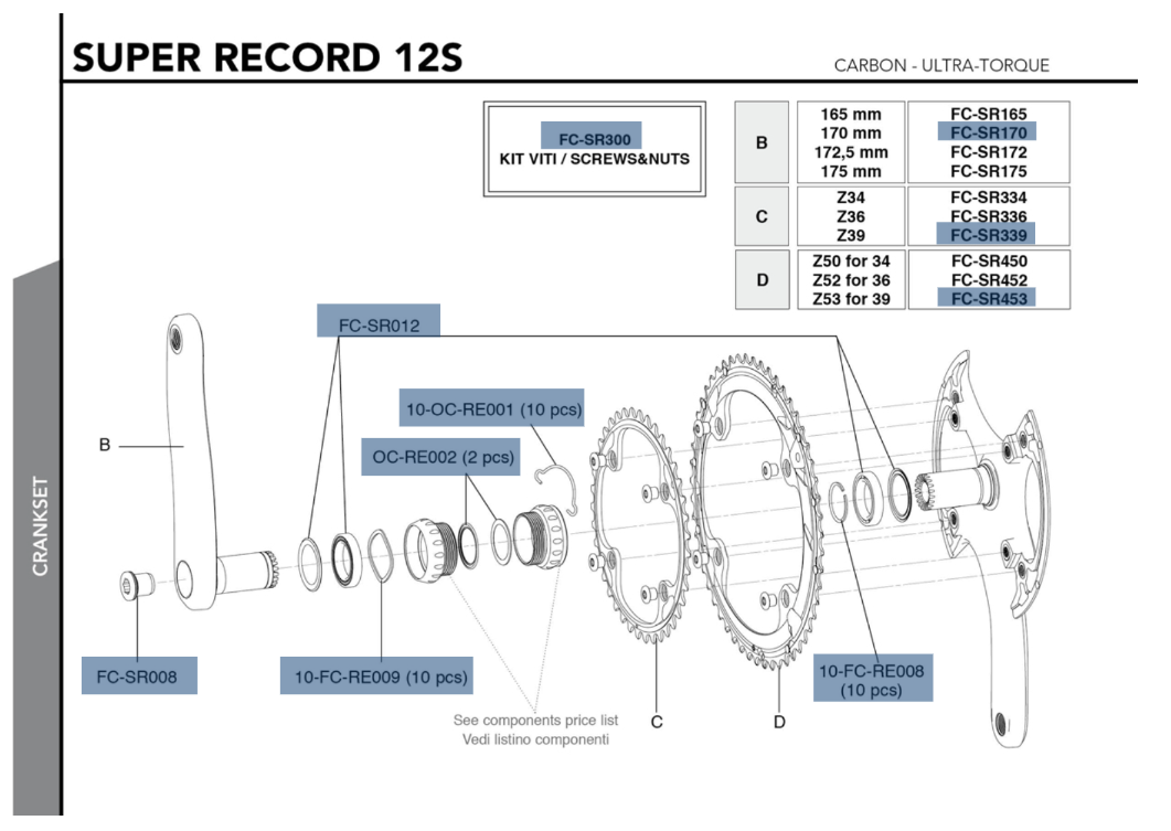 The Campagnolo Super Record 12×2 crankset: ultra-light carbon, optimal power transmission and smooth, precise shifting performance.