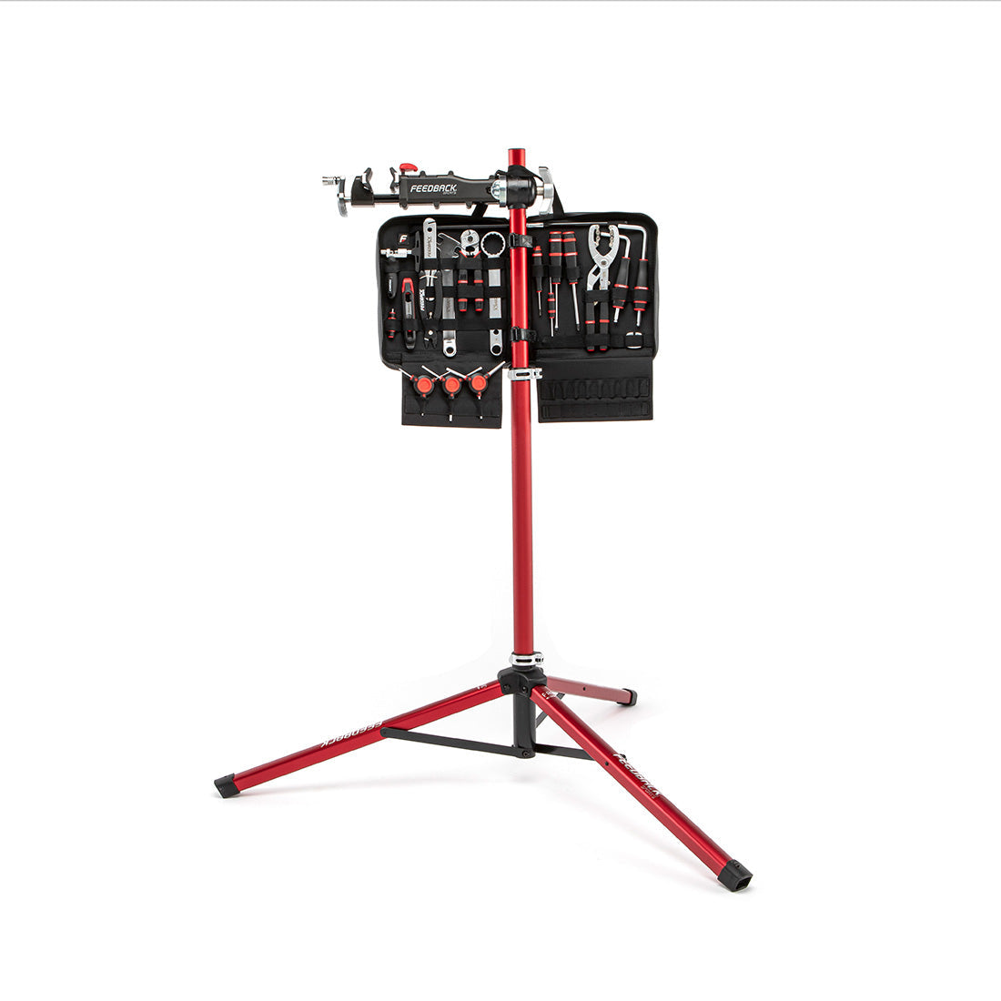 The Feedback Sports Pro Mechanic bike repair stand is the new high-quality, portable work stand designed for cycling enthusiasts and professional mechanics alike. Its purpose is to provide a stable and versatile platform to perform bike maintenance and repairs efficiently. The target audience includes avid cyclists, bike shop professionals, and anyone who values ease of maintenance for their bicycles. Compatible with bikes up to 34 kg.