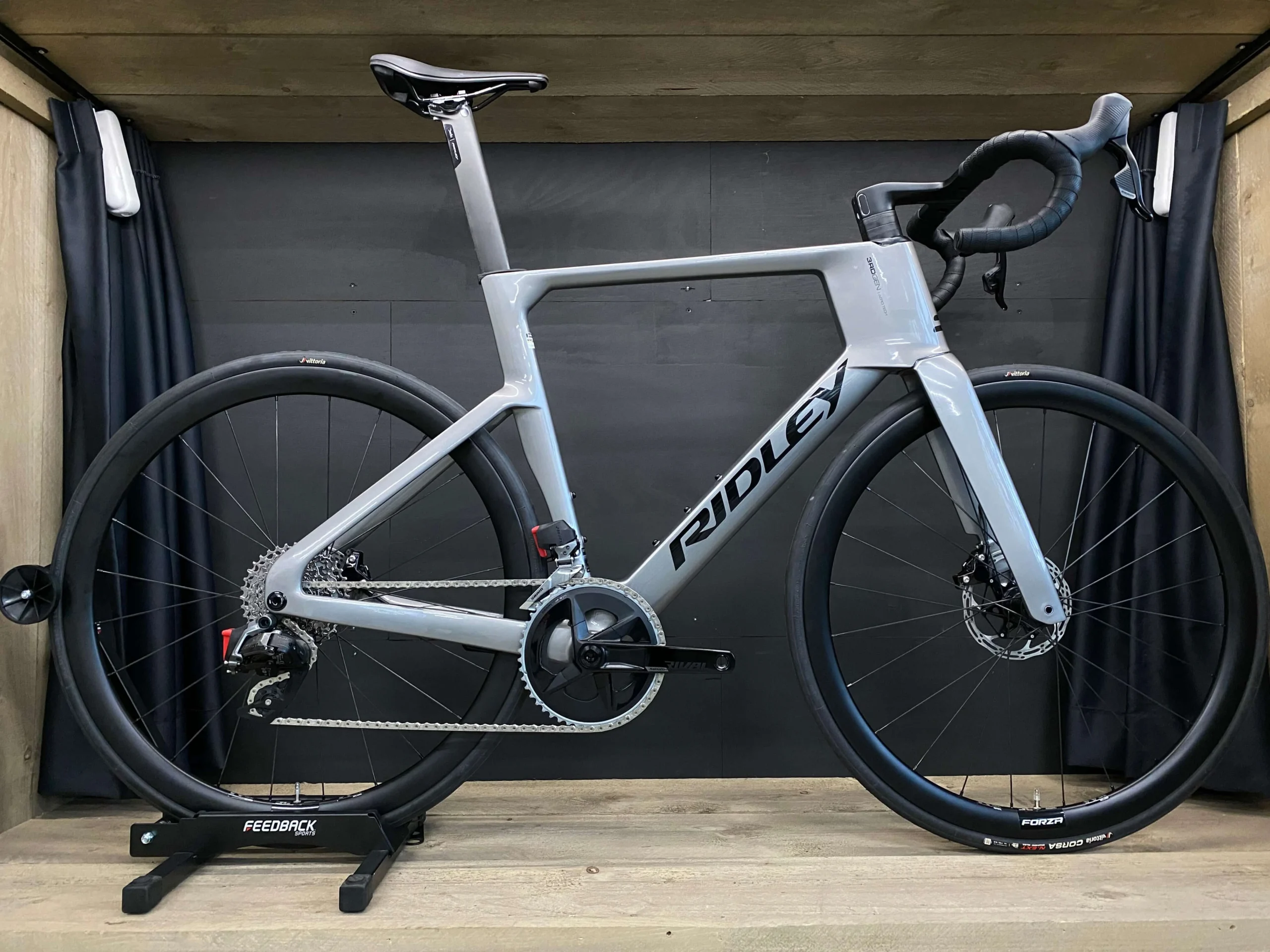 Ridley Noah 3.0 Disc with SRAM Rival eTap AXS 2×12, HM Carbon frame, Forza Skiron wheels, and DT Swiss 370 hubs. Fast, precise, and race-ready.
