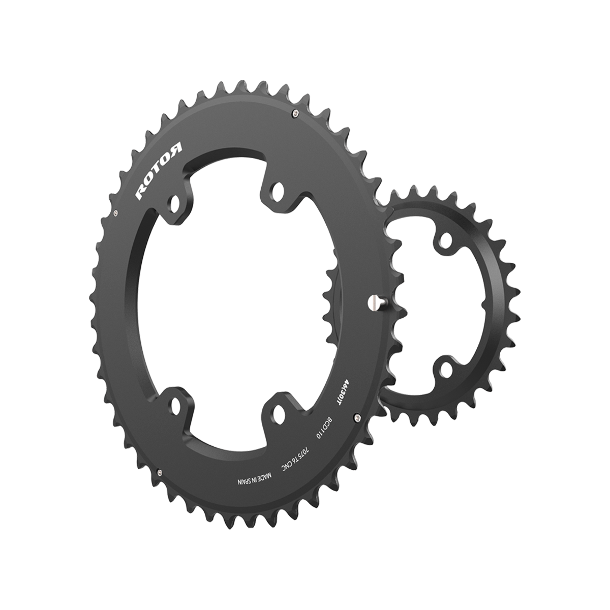 Not one to follow, ROTOR quickly caught up with compatible 48/31 and 46/30 Round Rings combinations with BCD 110/80×4 for Shimano® GRX and ROTOR BCD110/80×4 cranks.